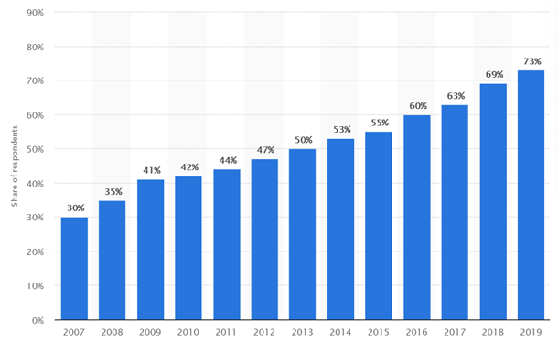 Statista. (2019). Share of people using internet banking in Great Britain 2007-2019. Retrieved February 12, 2020 from https://www.statista.com/statistics/286273/internet-banking-penetration-in-great-britain/